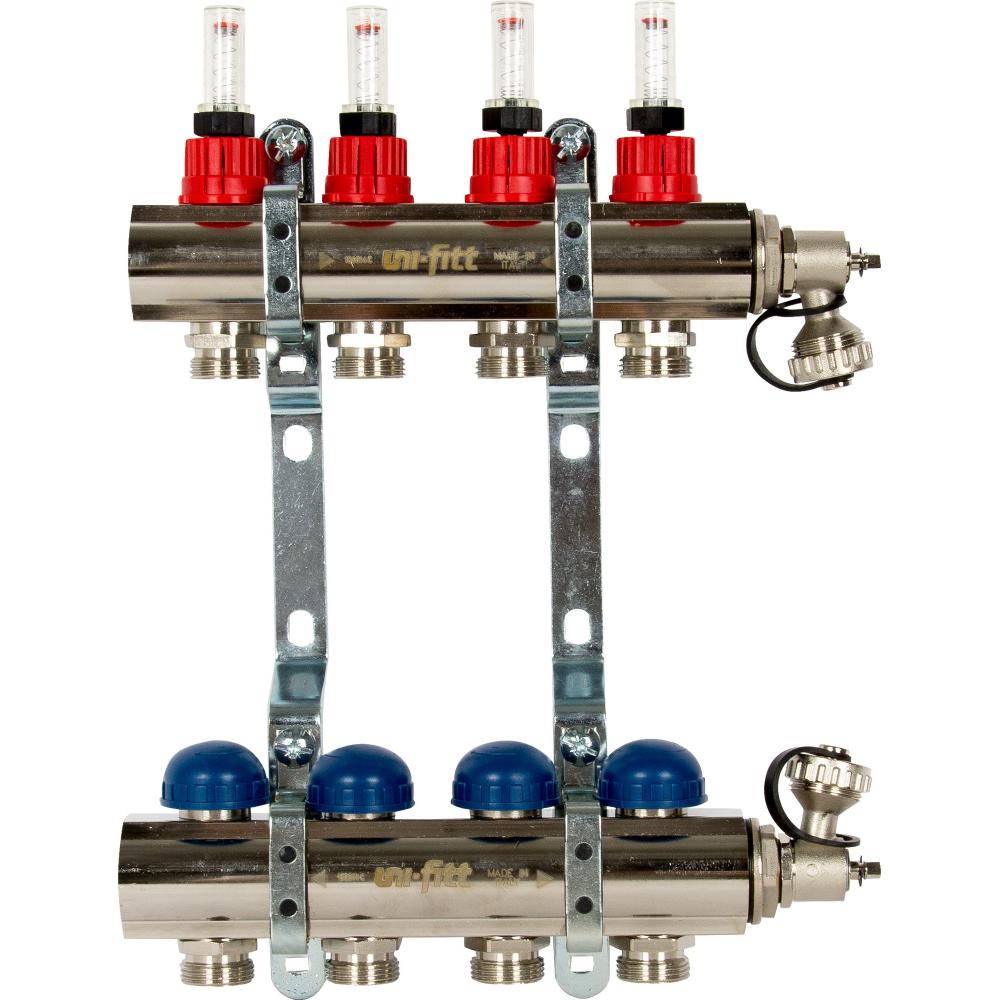Коллекторная группа Valtec 1" х 7 отводов с расходомерами нержавеющая сталь